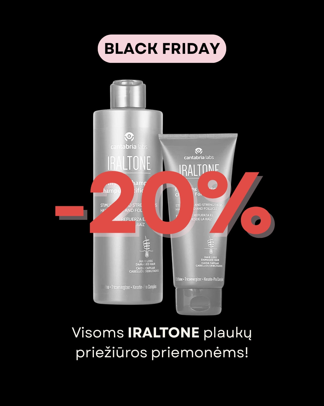 Tiek nedaug tereikia, kad plaukai vėl atgytų! Iraltone veikia iš vidaus – maitina šaknis, stiprina plauko struktūrą ir balansuoja galvos odą. Vitaminai, aminorūgštys ir augaliniai ekstraktai – viskas, ko reikia kasdien. Tobuli plaukai prasideda nuo sveikos odos!