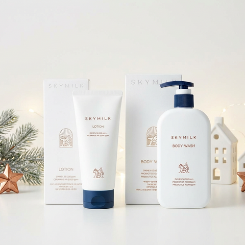 Šis rinkinys sukurtas kasdienei jautrios, sausos ar į sudirgimą linkusios odos priežiūrai. Abu produktai paremti SKYMILK patentuotu DKMEX® kompleksu, kuriame sujungtas aukštos kokybės korėjietiškas asilės pienas ir botaniniai ekstraktai. Formulės papildytos probiotikais, prebiotikais, keramidais, pantenoliu ir raminančiais augaliniais ingredientais, todėl šis duetas tinka tiek vaikams, tiek suaugusiems.